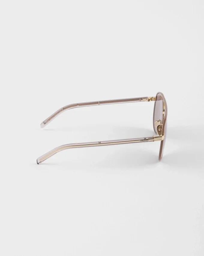 洗練されたラインと繊細なディテールが、この新しいPradaのサングラスに現代的なエレガンスを醸し出しています。メタル製のアビエーターフレームのフロントには、カラーアセテートのリムで引き立てられたティアドロップ型のレンズが採用されています。スリムなテンプルには、Pradaのロゴが刻まれたメタルプレートがあしらわれています。