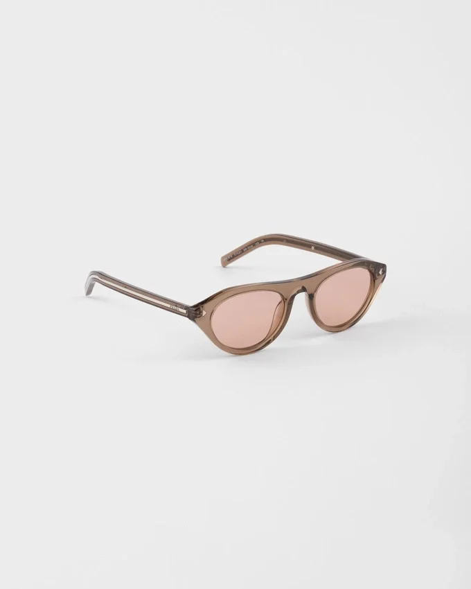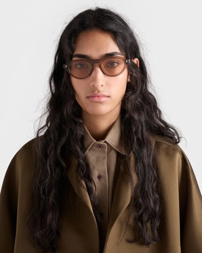 アイコニックなメタルプレートをあしらったPradaのサングラス