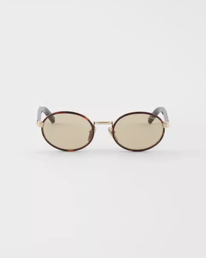 洗練されたラインと繊細なディテールが、この新しいPradaサングラスに現代的なエレガンスを醸し出しています。メタルフレームのフロントには、カラーアセテートのリムがアクセントとなったオーバルレンズが採用されています。スリムなテンプルには、Pradaのロゴが刻まれたメタルプレートがあしらわれています。
