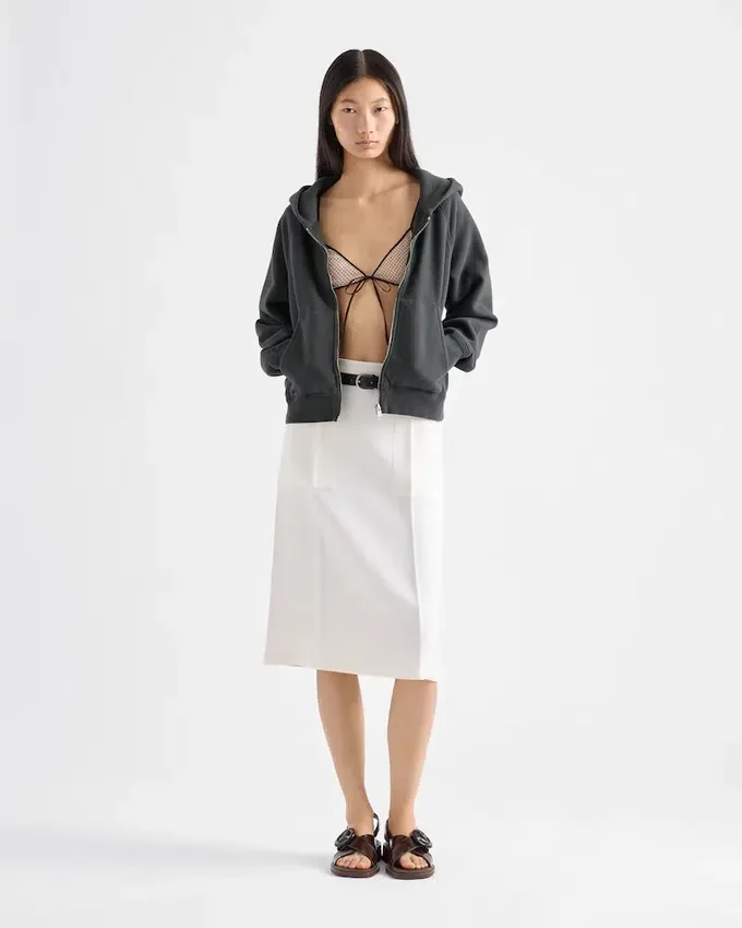 このアスペンコートは洗練されたシルエットが特徴で、背中の中心に配されたスエード製の三角ロゴが織りなす繊細なコントラストが、その魅力をさらに引き立てています。中央のボタン留めとフラップポケットが特徴的なクラシックなデザインは、控えめでありながら洗練された雰囲気を醸し出しています。