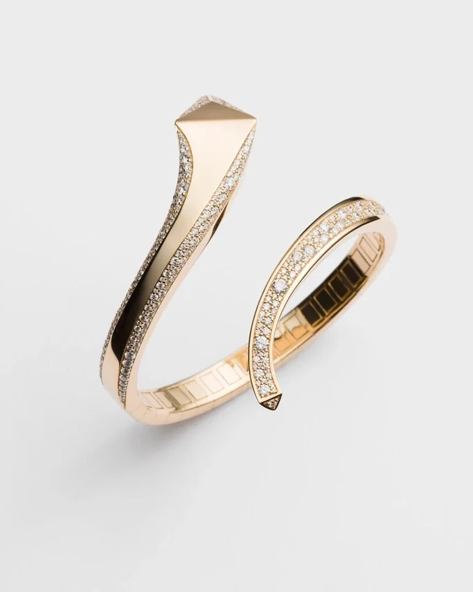 Pradaの作品に内在する二元性を表現したこのジュエリーは、優雅でしなやかなデザインが特徴であり、ユニークで洗練されたシルエットを際立たせるきらめくダイヤモンドによってその美しさが強調されています。