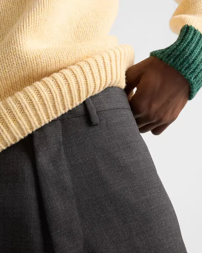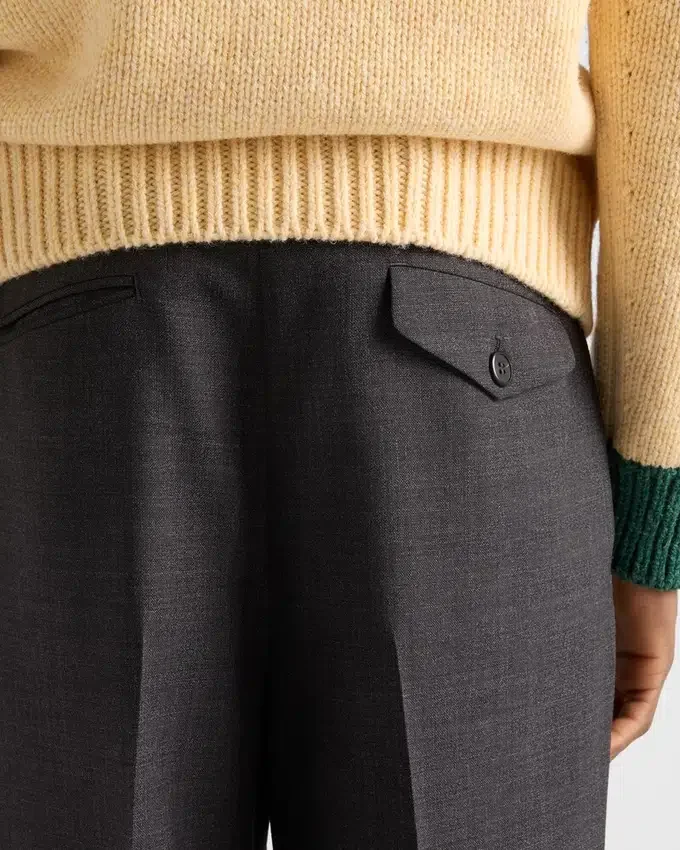 このウールパンツはスリムフィットで、クラシックなディテールが特徴です。精巧な仕立てと洗練されたシルエット、そして上質な素材が、このエレガントで汎用性の高い一着を際立たせています。