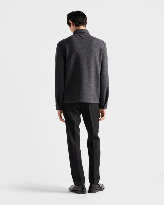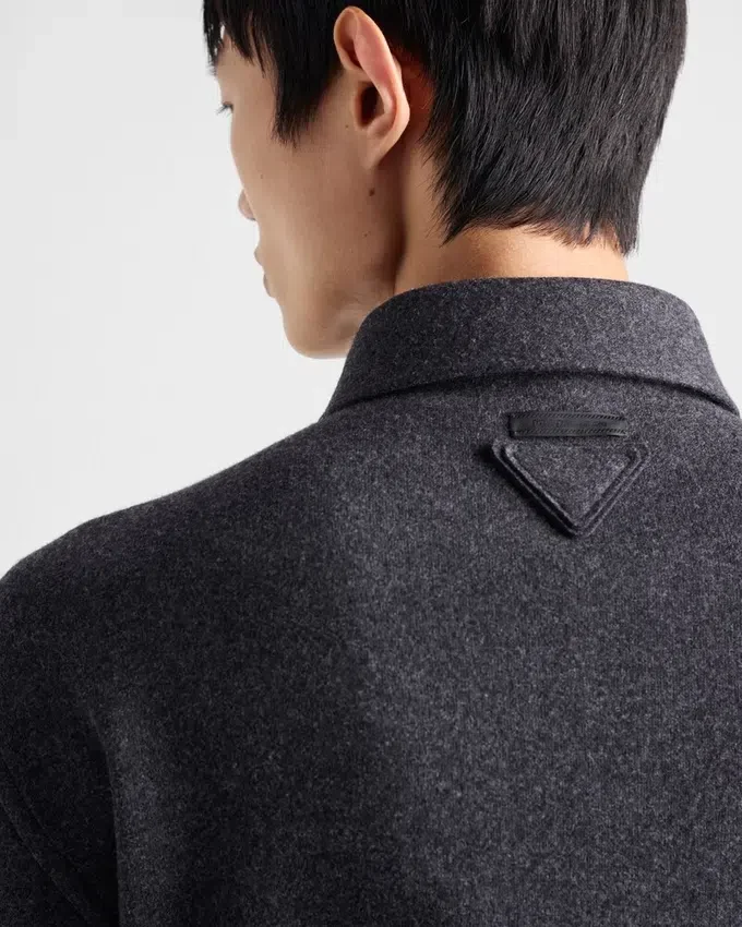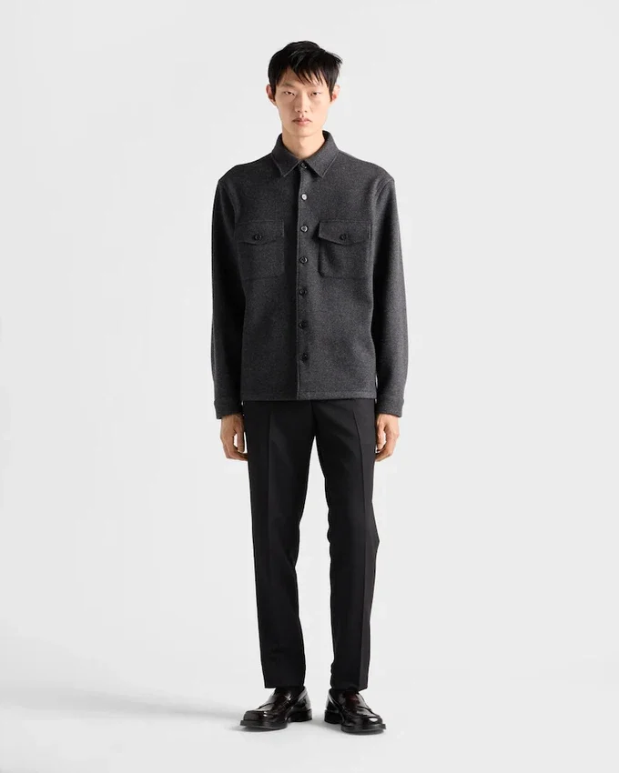 カジュアルで着回ししやすいこのウール混紡シャツは、すっきりとしたカットと洗練されたデザインが特徴です。温かみと上品さを兼ね備えたこのアイテムは、同系色のトライアングルロゴがアクセントとなっています。