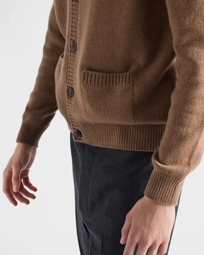 滑らかな肌触りと完璧なシルエット。このスリムフィットのカシミヤカーディガンは、プレーンニット、スリムフィット、そして三角ロゴやパッチポケットといった象徴的なディテールが際立っています。
