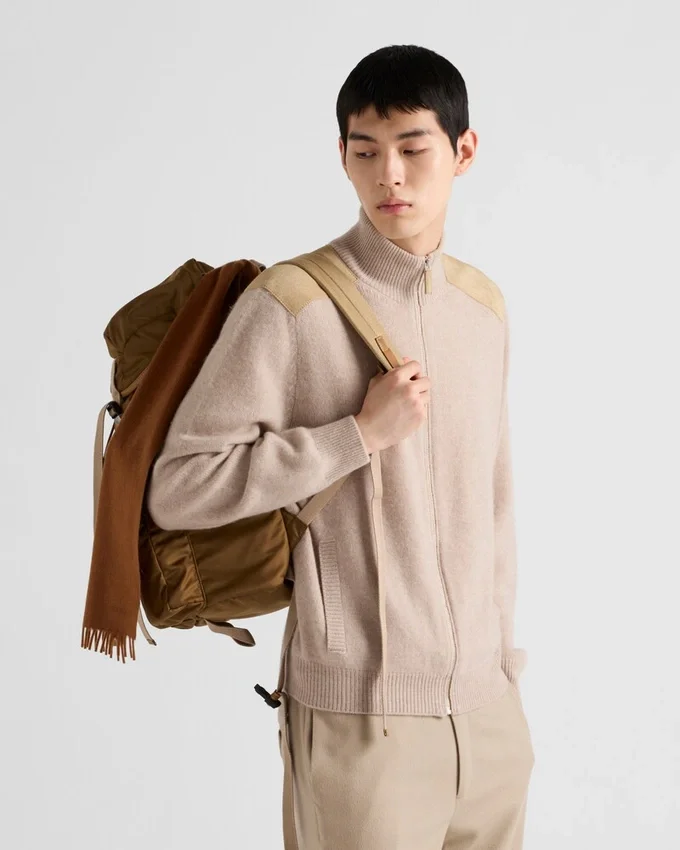 エレガンスとスポーティさの二面性が、柔らかなラインと洗練されたディテールで定義されるこのカシミアカーディガンのデザインにインスピレーションを与えています。