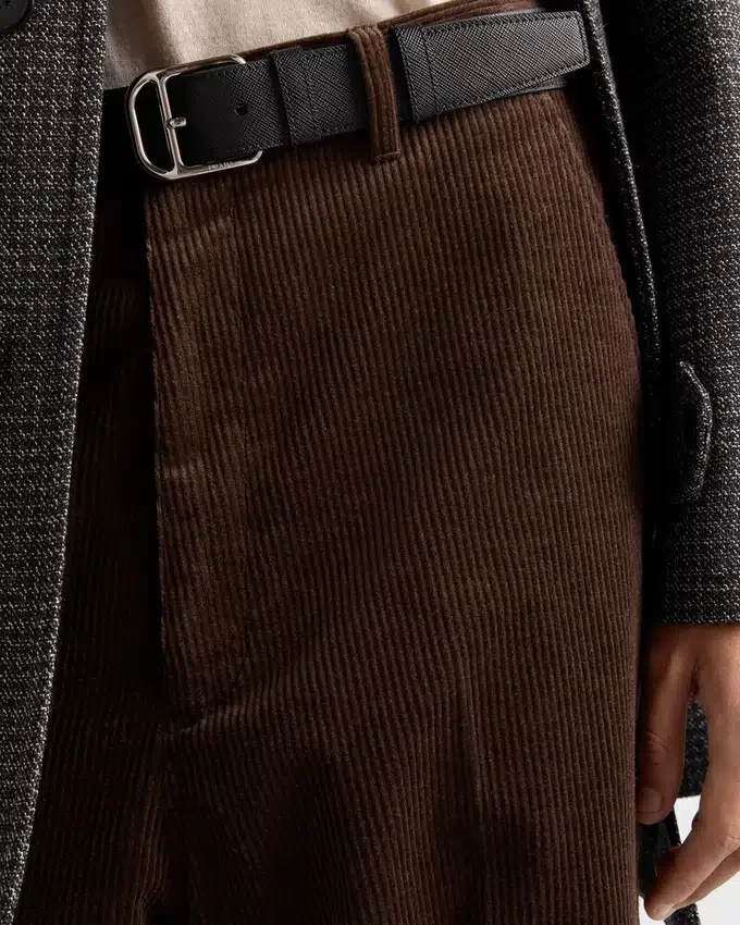 カジュアルなシルエットとシンプルなディテールが特徴のこのワイドパンツは、カシミアとコットンコーデュロイで作られています。上質なブレンド素材が、カジュアルなデザインに洗練された雰囲気と快適さを与えています。