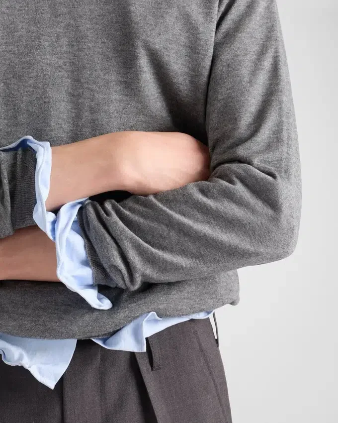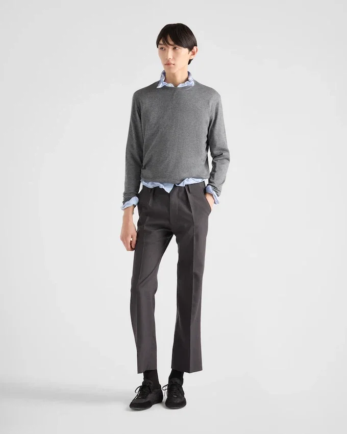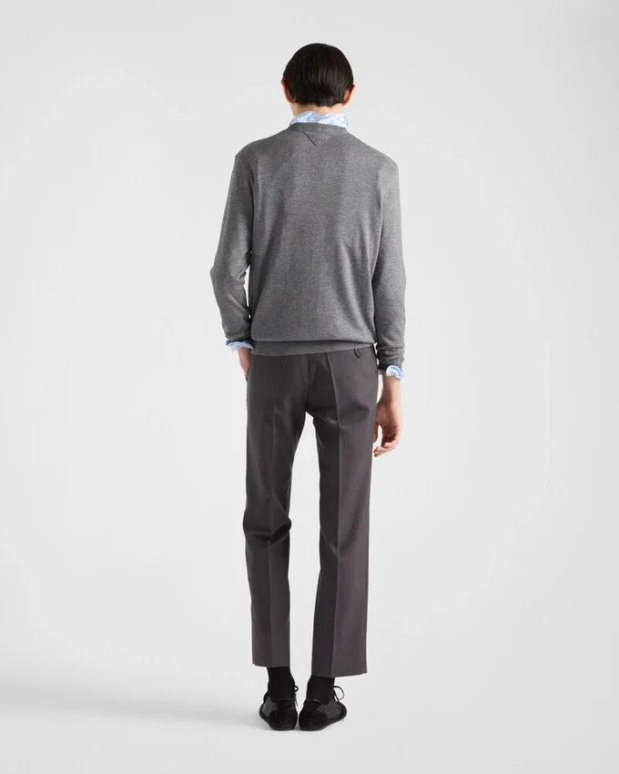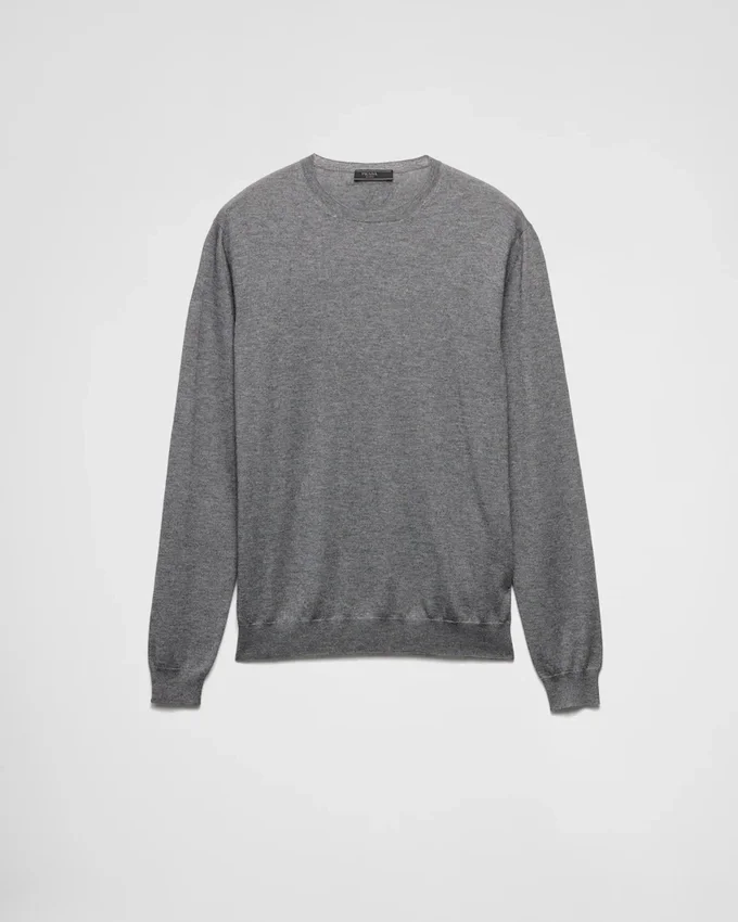 上質なカシミアとシルクの混紡糸を使用した、クラシックなラインのクルーネックセーター。シンプルなエレガンスと時代を超えたスタイルを体現しています。