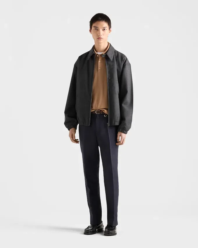 洗練されたモダンなシルエットが特徴の、三角形のロゴという象徴的な幾何学模様をあしらったカシミア&シルクのポロシャツ。