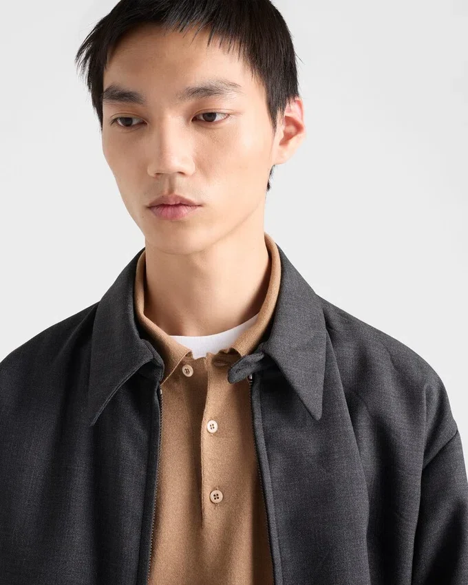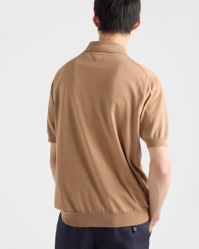 洗練されたモダンなシルエットが特徴の、カシミアとシルクのポロシャツ。象徴的な三角形のロゴがアクセントになっています。