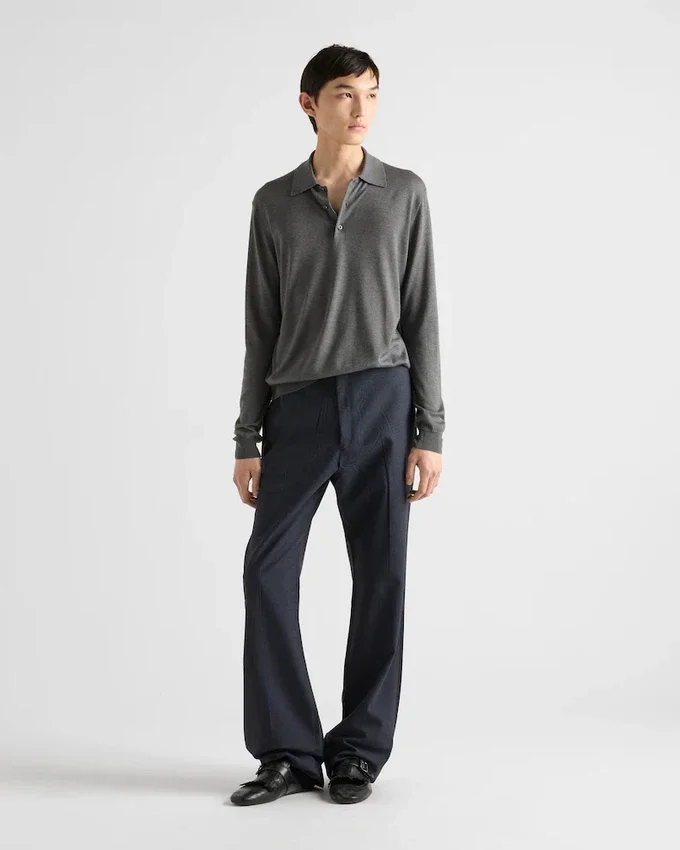 上質なカシミアとシルクの混紡糸を使用した、クラシックなラインのこのポロシャツは、シンプルなエレガンスと時代を超えたスタイルを体現しています。