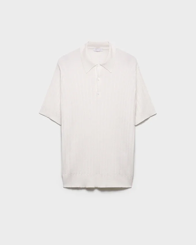 上質なカシミアとシルクの混紡糸を使用した、クラシックなシルエットのこのポロシャツは、シンプルなエレガンスと時代を超えたスタイルを体現しています。