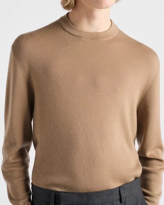このカシミヤセーターは、クルーネックとフィット感のある袖が特徴です。クラシックなリブ編みが、クルーネック、袖口、裾を縁取っています。