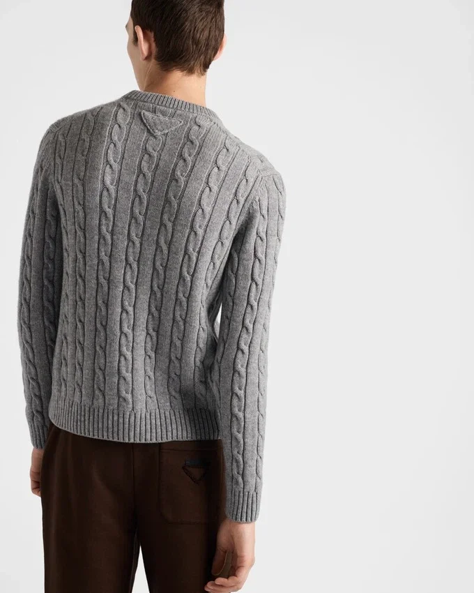 ケーブル編みのモチーフが施されたこの上質なカシミヤセーターは、細部へのこだわりが際立っています。着心地の良さと職人技が、時代を超えたエッセンシャルズアイテムを形作っています。