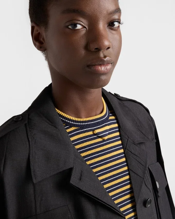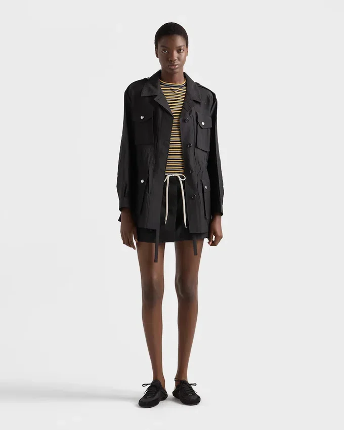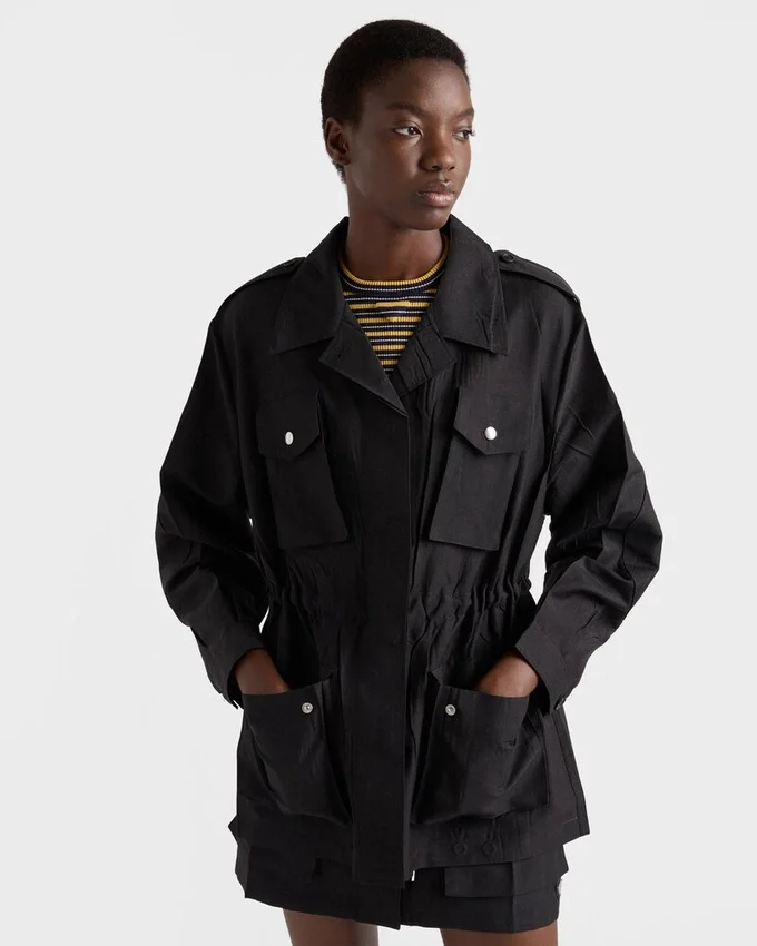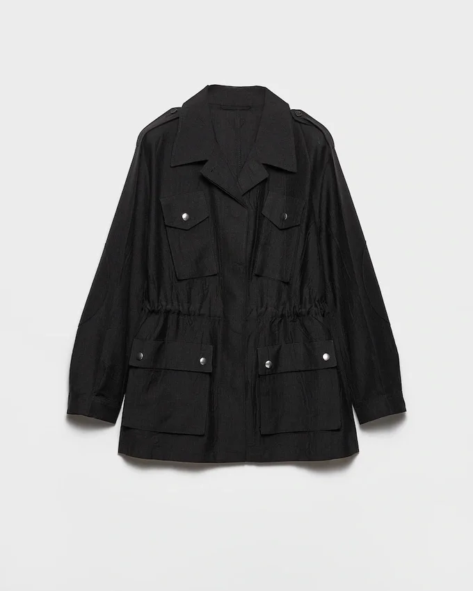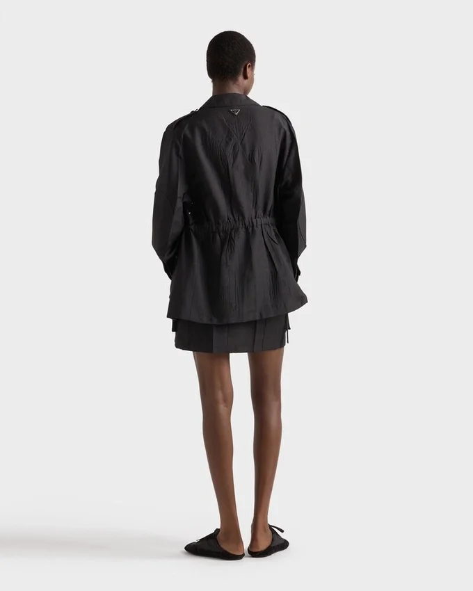 ガーメントダイ技法が独特のニュアンスを醸し出し、キッドモヘアが柔らかな肌触りを加えています。 ドローストリングと細部へのこだわりによってボリュームが形作られています。