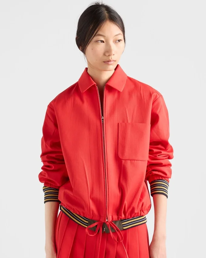 ミニマルなラインとスポーティーなディテールが特徴のギャバジン・ブルゾンジャケット。軽やかで着回しの効くシルエットのこの洗練された一着は、実用的でありながら洗練されたスタイルを体現しています。