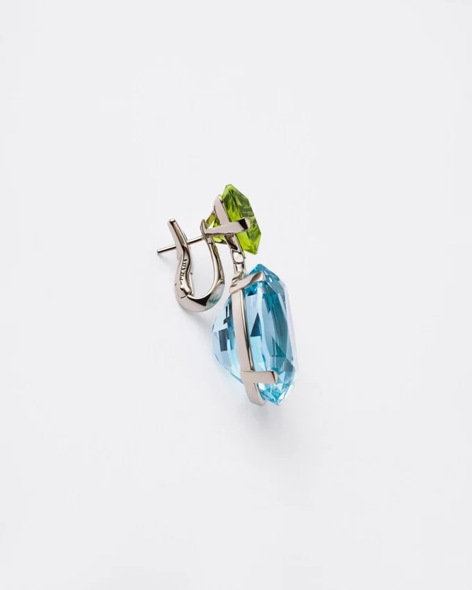 クーレ・ヴィヴァンテ ペンダントイヤリング – アクアマリンとペリドットをあしらったホワイトゴールド