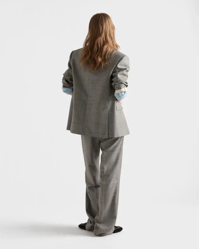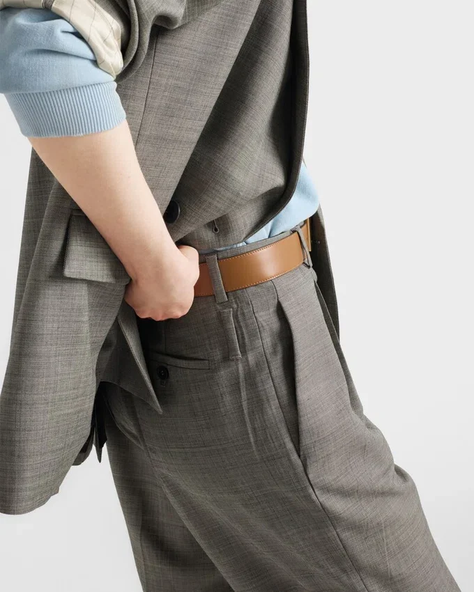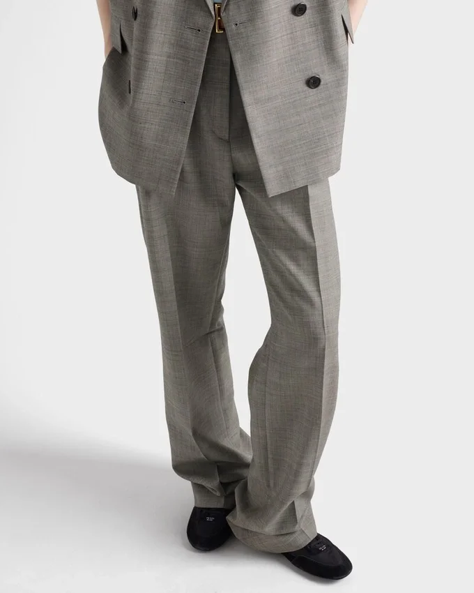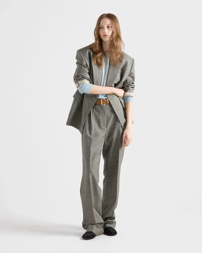 このグリザイユパンツのシルエットは、クラシックスタイルを特徴づける仕立ての厳格さとは対照的に、オーバーサイズでローライズなカットによって定義されています。メンズウェアから着想を得たシルエットと素材が、カジュアルで現代的なスタイルとして再解釈されています。