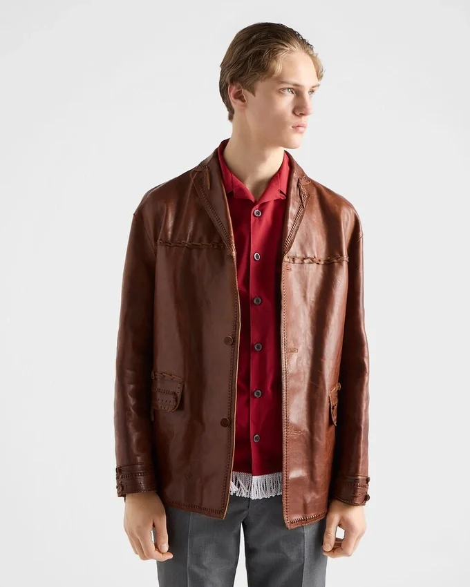トーンの変化が、レトロなディテールを加えたボウリングシャツのように、Pradaのワードローブにおけるクラシックなアイテムを再定義します。 今シーズンの軽やかで自由なムードを、裾にフリンジをあしらった軽量でボックスシルエットに反映。