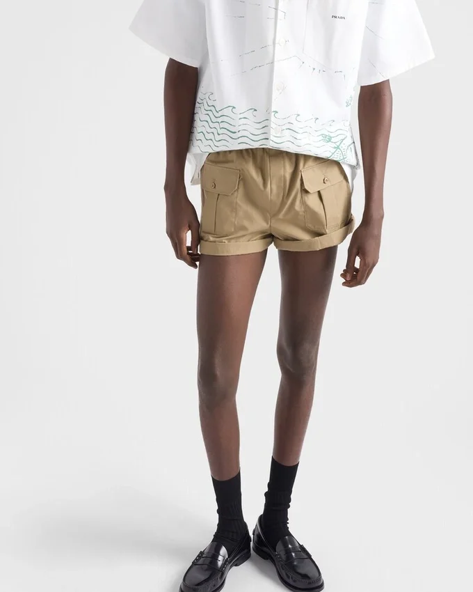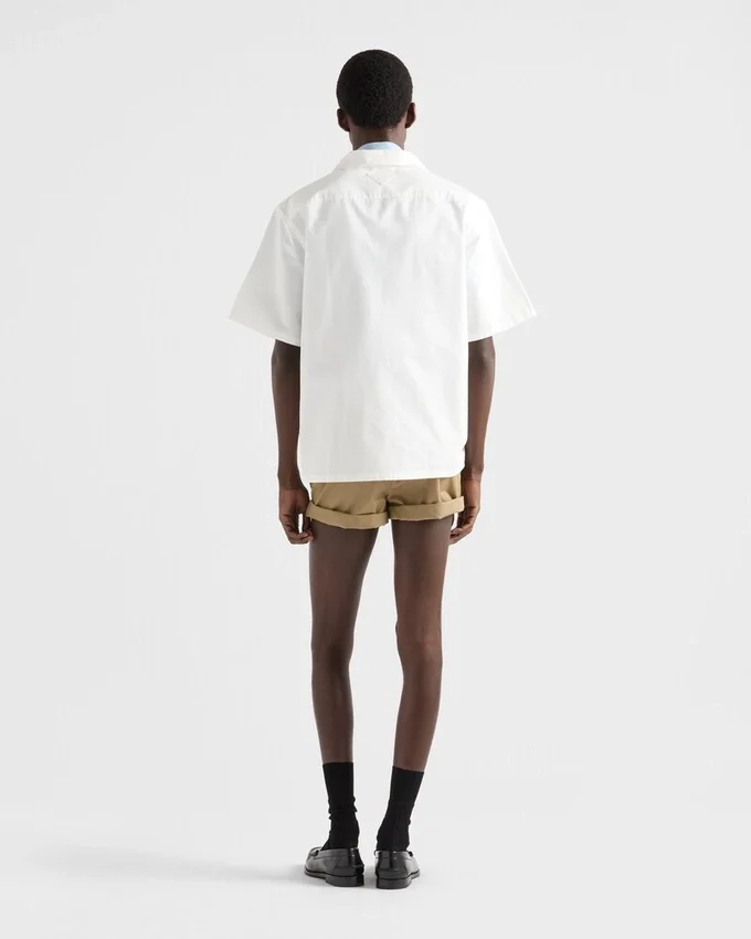 コットンポプリン素材が、洗練されたデザインのこのバーミューダパンツにカジュアルな雰囲気を添えています。軽やかで快適なシルエットはストレートカットが特徴で、2つのボタン付きポケットがアクセントになっています。