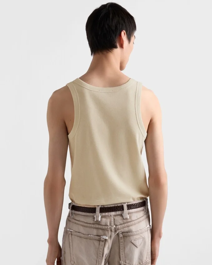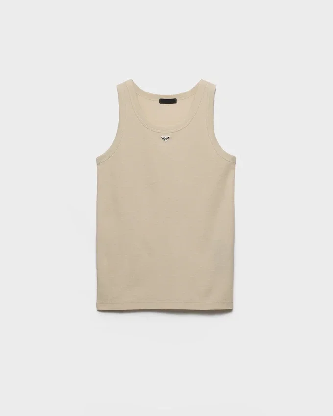 シンプルでありながら個性的なこのソフトコットン製タンクトップは、スポーティーなシルエットが特徴です。エナメル加工されたメタル製の三角ロゴがスタイルを引き立てています。