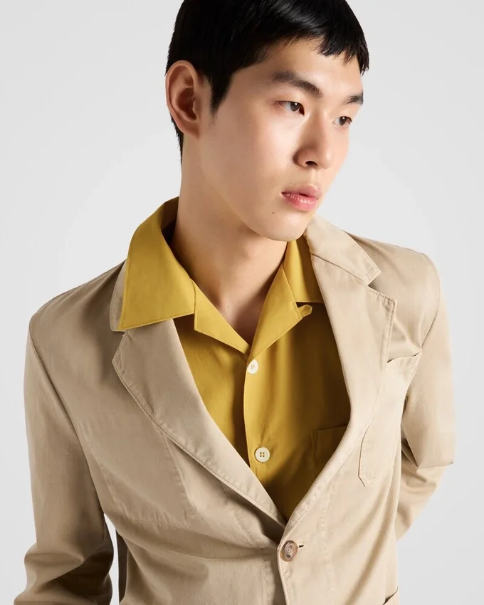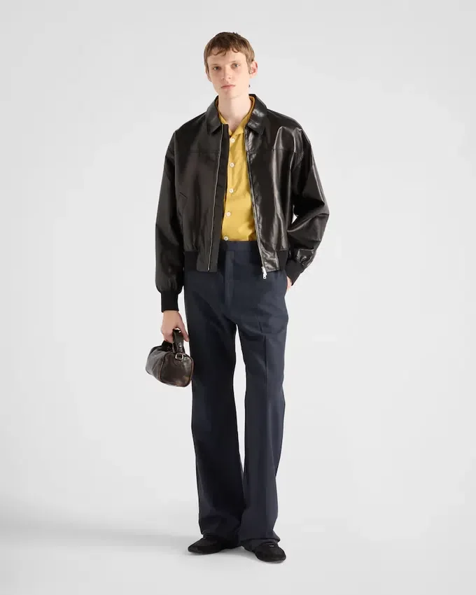 特徴的なボウリングシャツを、ミニマルなシルエットを生み出すクリーンなラインで再解釈。マザーオブパールボタンと象徴的なトライアングルロゴがアクセントになっています。