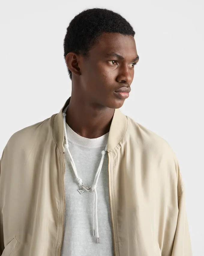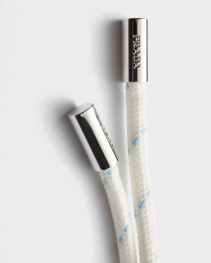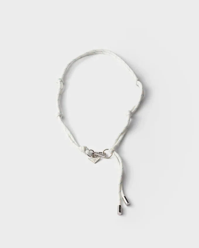 このコードネックレスは、サマーコレクションのスポーティーでありながら洗練されたキャラクターを表現しており、ロブスタークロウ留め具で仕上げられています。エナメル加工されたメタル製の三角ロゴが、この現代的なアクセサリーに彩りを添えています。
