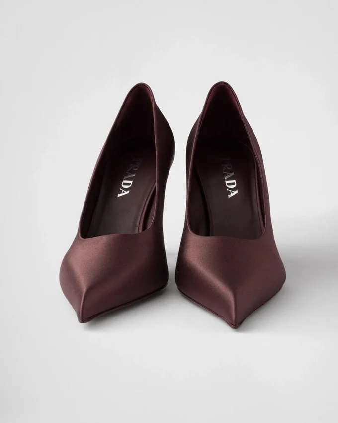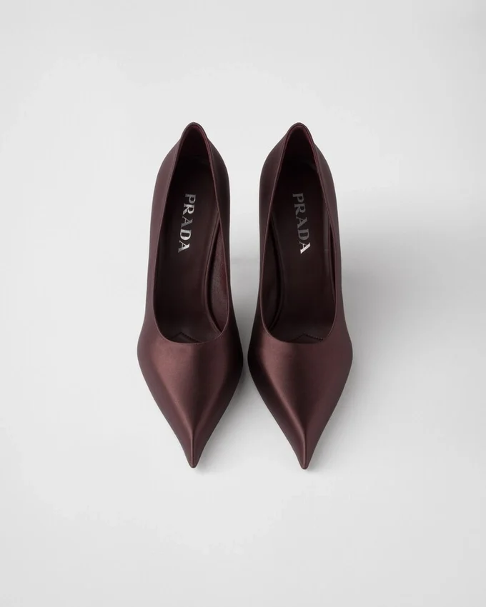 洗練されたフェミニンなデザインと繊細なディテールを備えたこのパンプスは、時代を超えたシルエットを現代的に再解釈したものです。 このスタイルは、尖ったアッパーから先細りのヒールへと続く、大胆で伸びやかなラインが特徴です。洗練されたシンプルなフォルムは、光沢のあるサテンの仕上げによって引き立てられ、モダンで洗練された雰囲気をシューズに添えています。