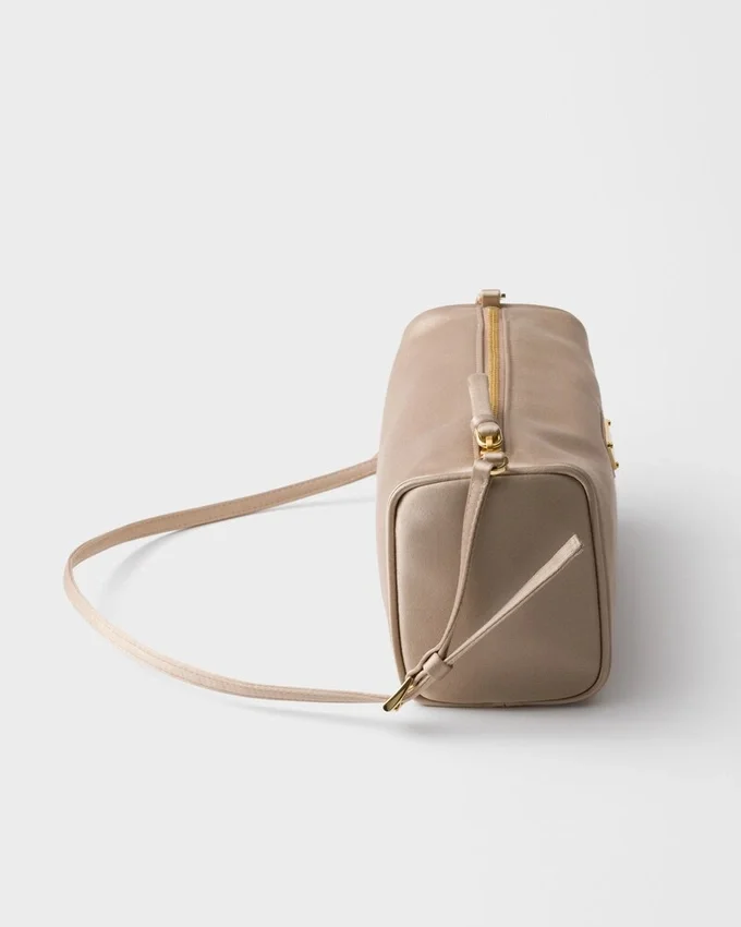 洗練された幾何学的なフォルムを持つこのミニバッグは、サテンの繊細な優雅さが際立っています。洗練されたディテールが洗練されたシルエットを引き立て、細長いハンドルにより肩掛けも簡単です。