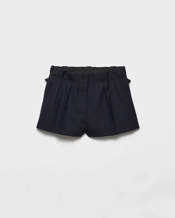 シェブロンウールを使用したこのショーツは、ゆったりとしたフィット感のワイドシルエットが特徴です。新しいプロポーションと柔らかなラインが、現代的な仕立ての優雅さを際立たせています。