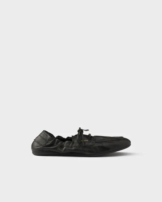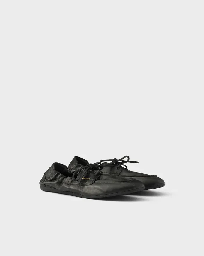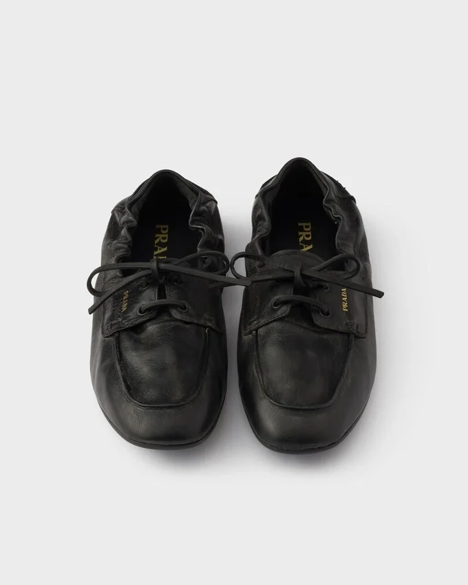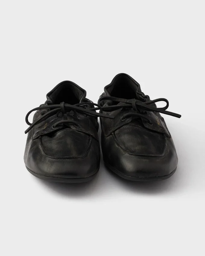 フォーマルなスタイルを備えたクラシックなボートシューズが、革新的かつ完全にデコンストラクトされたデザインで再解釈されました。このレースアップシューズは、軽やかで柔らかく、しなやかなシルエットを重視した靴作りの進化を体現しています。ヴィンテージ風のアンティーク加工が施されたレザーを使用し、洗練されたラインを持つこれらのボートシューズには、上品なレタリングロゴがあしらわれています。