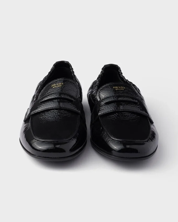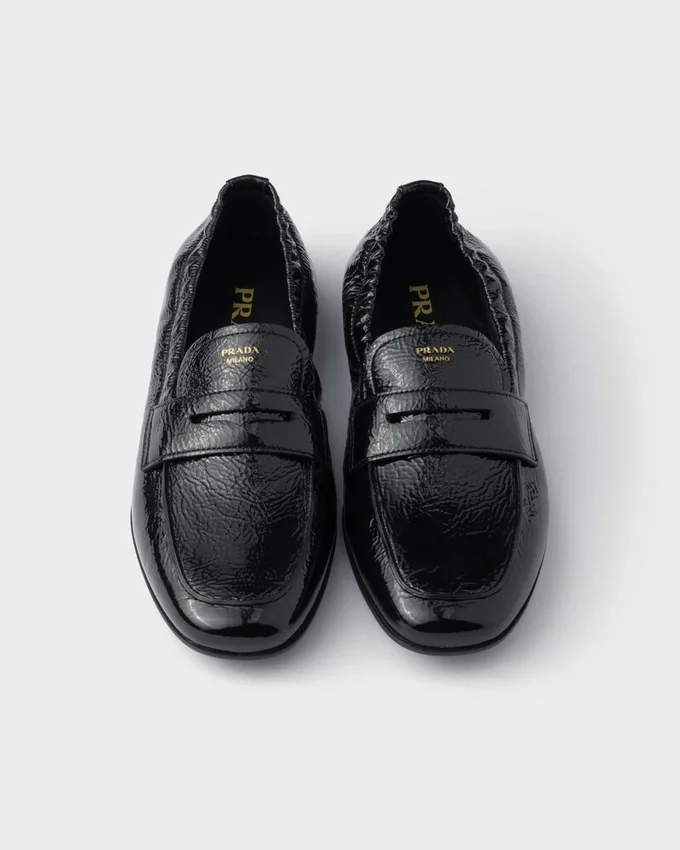 新しいシルエットが、クラシックなフットウェアを現代的な感性で再解釈。デコンストラクテッドで軽量なデザインにパテントレザーを組み合わせ、エレガントで洗練された魅力を放つローファーです。