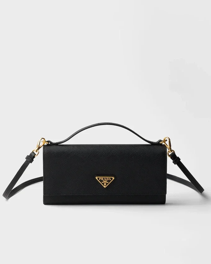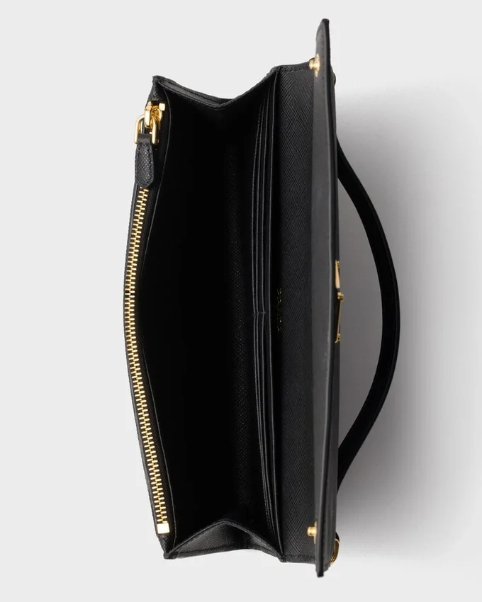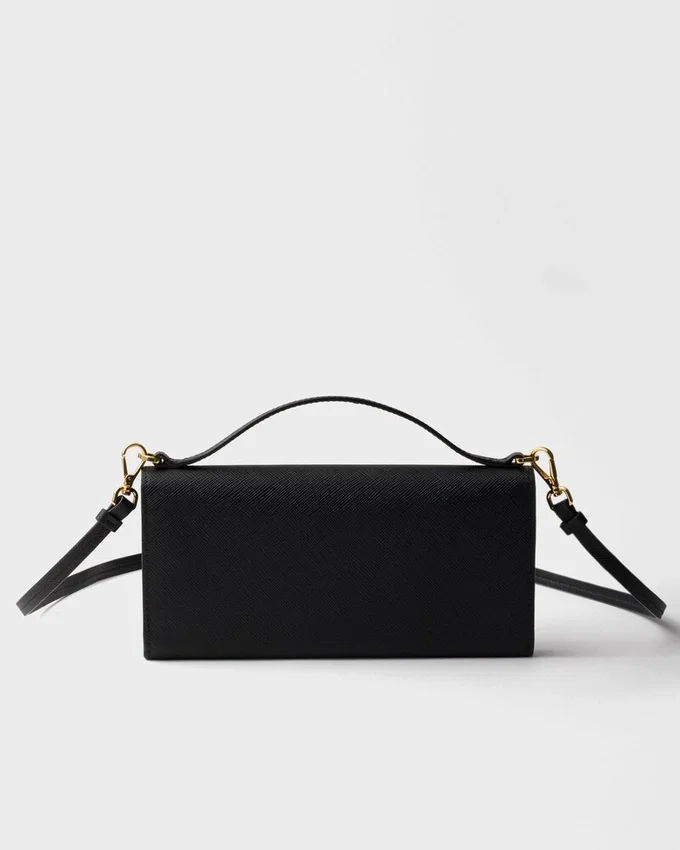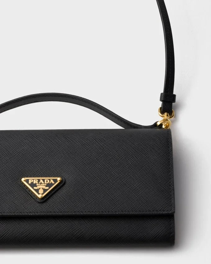 洗練されたディテールを施したSaffianoレザー製のこの財布は、実用的かつ洗練されたデザインが特徴です。ショルダーストラップが付いており、機能性と汎用性を兼ね備えたアクセサリーとなっています。