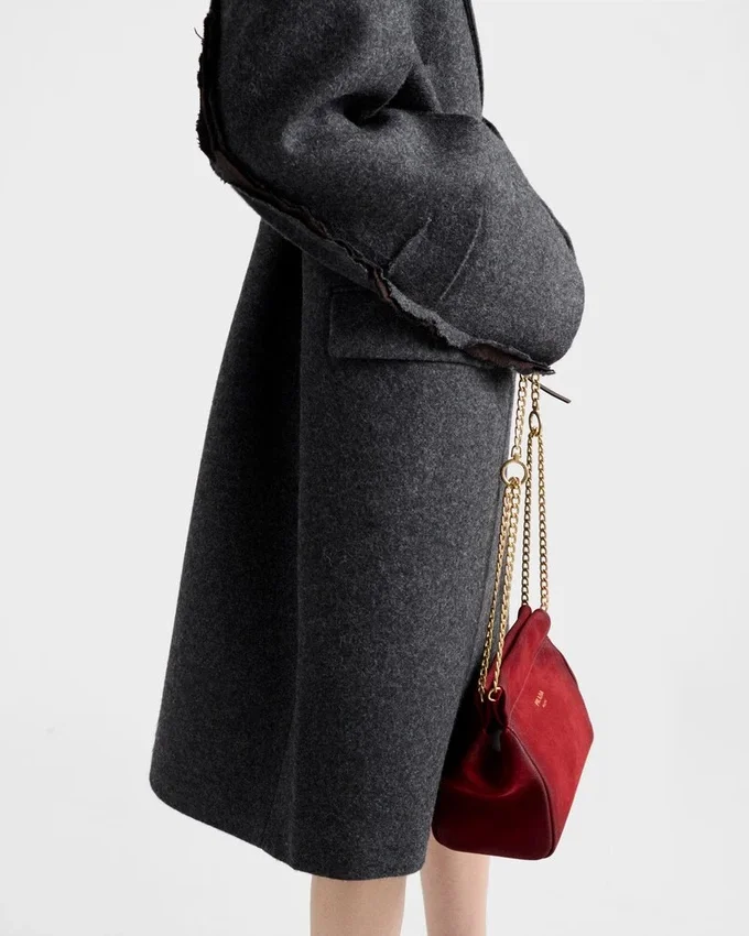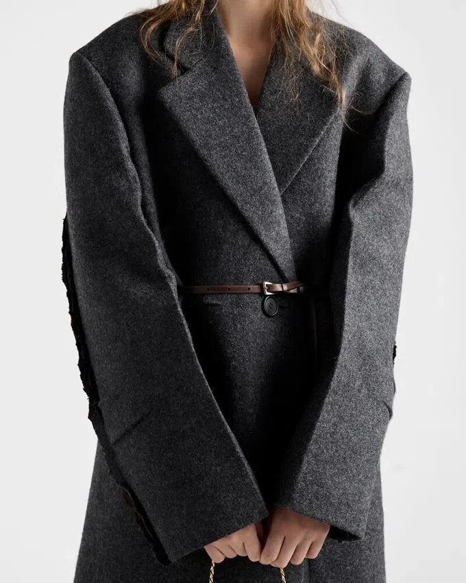 このシェトランドウールコートのデザインには、仕立ての精緻さと、不完全さから生まれる予期せぬビューティーが融合しています。独自の表現手法により、意図的に未加工のまま残されたディテールが、クラシックなシルエットを一新します。見える縫い目、プリーツ、そして切りっぱなしの縁が、形と意味を再定義し、本能的で型破りなエレガンスを呼び起こします。