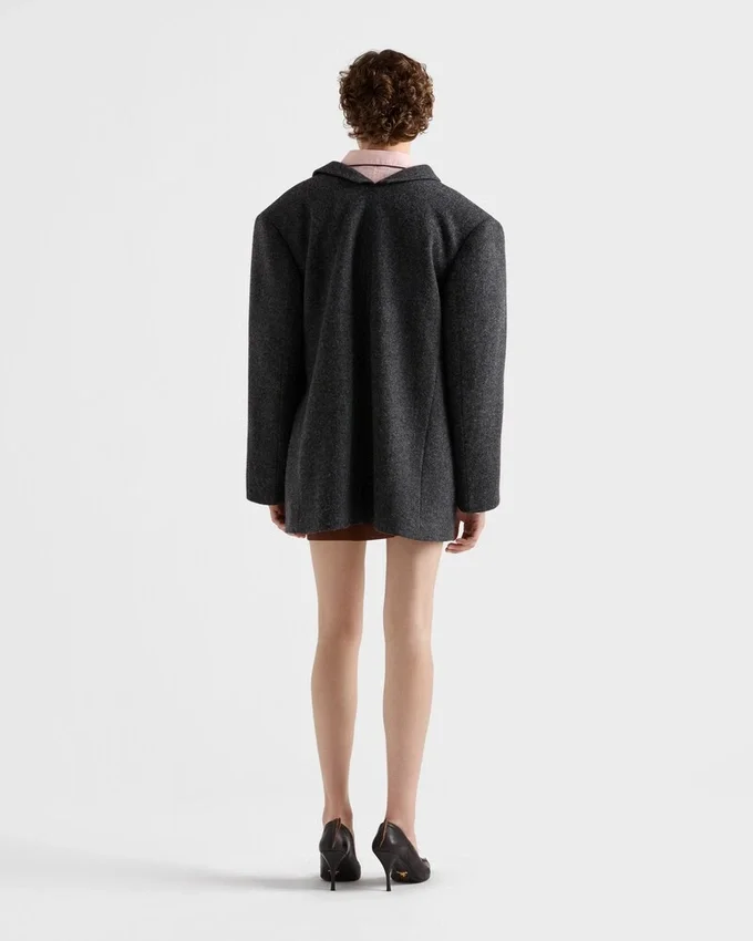仕立ての精密さと、不完全さから生まれる予期せぬ美しさの相互作用が、新たなプロポーションと着こなし方を提案します。このジャケットはシェットランドウールを使用し、シンプルかつ洗練された構造を特徴としますが、裏返しに施された襟という独自のディテールが、この一着にユニークでモダニズム的な個性を与えています。