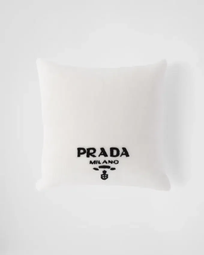新しいライフスタイル アクセサリーコレクションの一部であるこの枕は、対照的な色合いで刺繍されたロゴ文字によって引き立てられた、エレガントな魅力と柔らかな肌触りが特徴です。