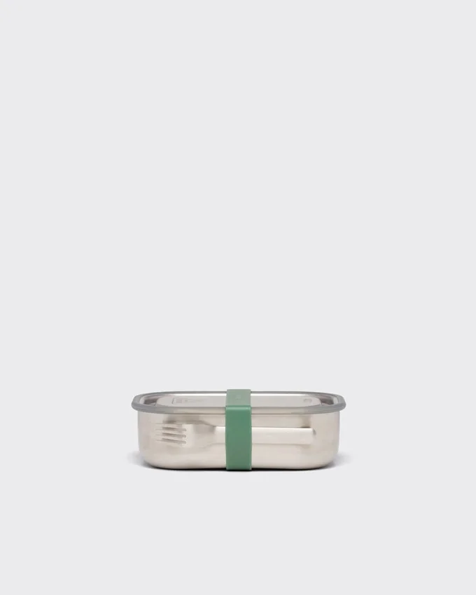 このステンレス製ランチボックスは、サステナブルな食品保存容器、ボトル、魔法瓶の製造で知られるブランド「Black + Blum」とのコラボレーション製品です。独創的なデザインで、環境への負荷を抑えた耐久性のある素材で作られています。