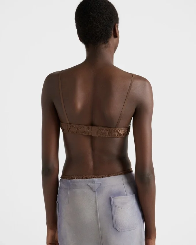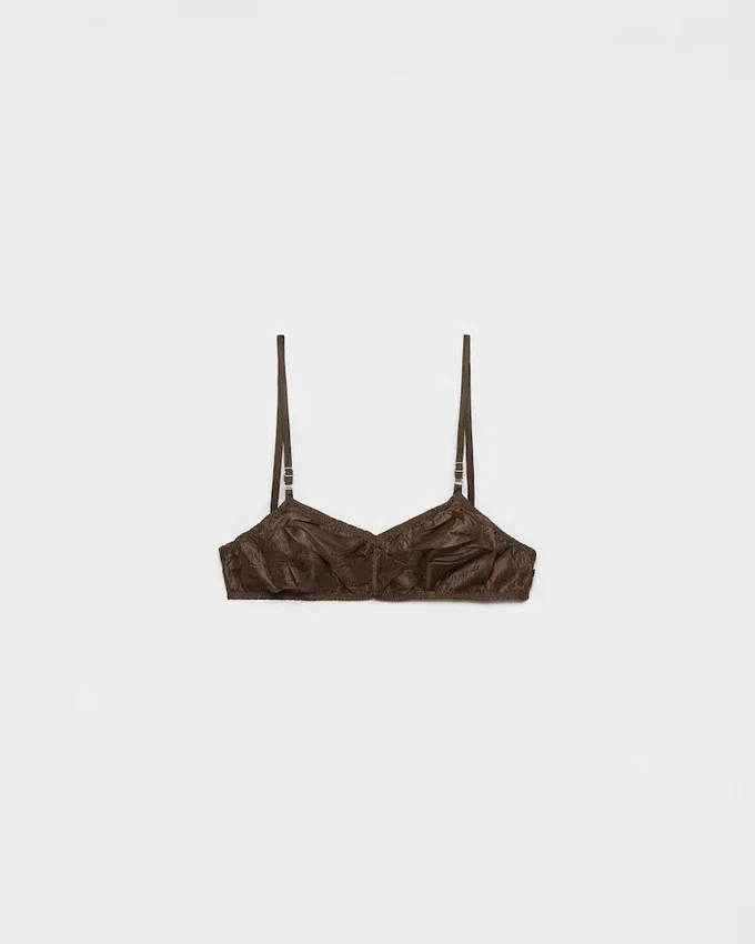 ホールド感と軽さの洗練されたバランス:タフタがシンプルなシルエットを形作り、エナメル加工されたメタルトライアングルロゴがアクセントとなり、上品なディテールを演出します。
