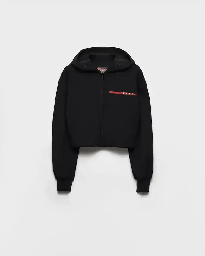 スポーティでミニマルな魅力を持つこのスウェットシャツは、海から回収された再生プラスチックや使用済みプラスチックから作られたポリエステル繊維を使用した二重織りの生地「ダブルジャージー」で作られています。保温性を高めるヒートシール加工のテープシームがアクセントとなり、プラダの象徴的な「プラダ リネア・ロッサ」ロゴがあしらわれています。