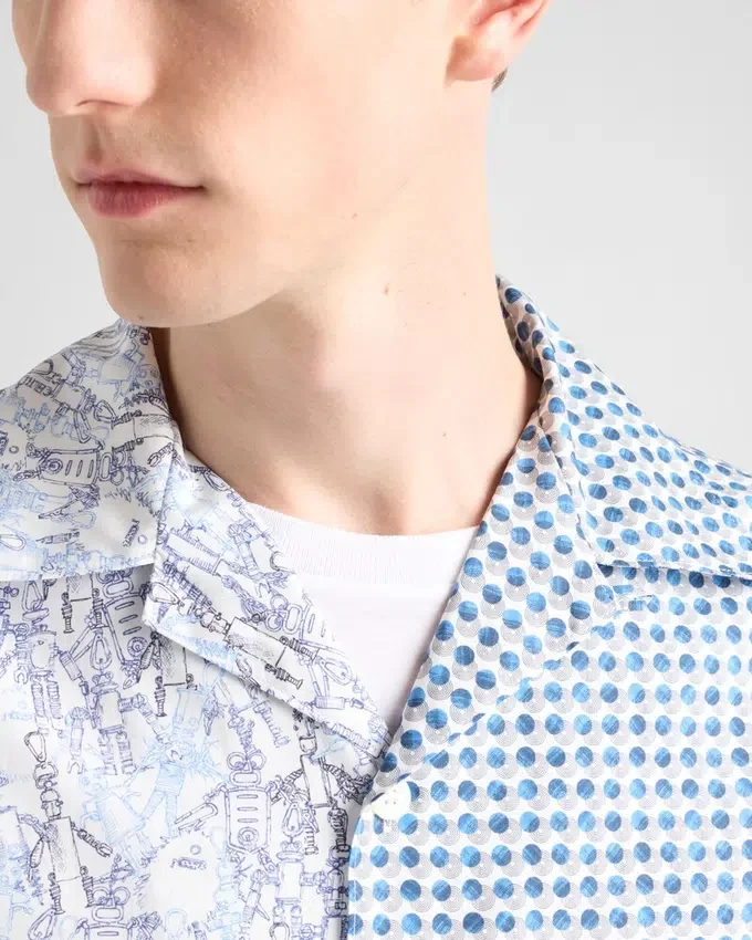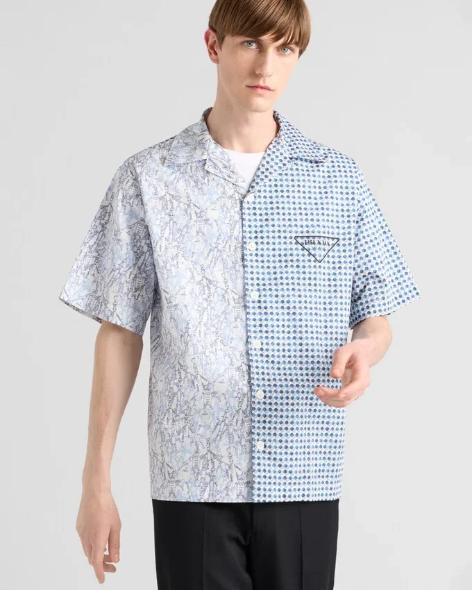 2つの洗練された対照的なプリントが、レトロなインスピレーションを受けたスポーティーなデザインと、特徴的な三角形のロゴの幾何学的な形状で彩られたこのダブルマッチシャツに活気を与えています。