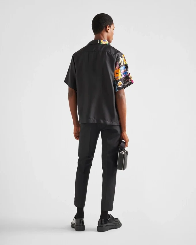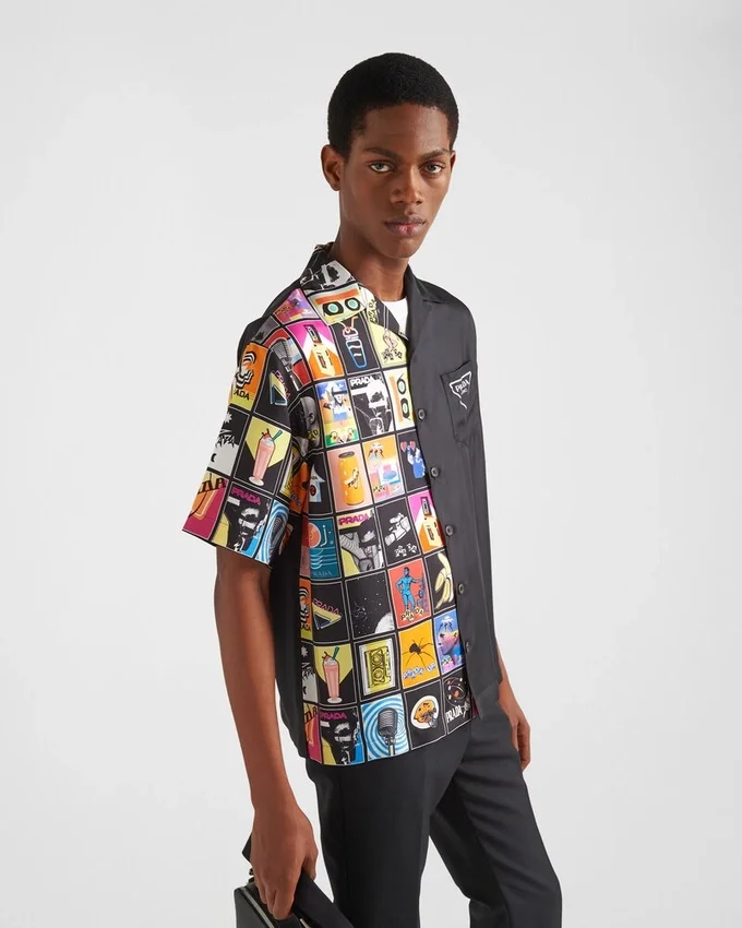 鮮やかなグラフィックのコントラストが「ダブルマッチ」シャツを特徴づけ、ブランドを象徴する二面性と対比がデザインに活気を与えています。シルクツイル製のこのシャツは、スポーティーなオーバーサイズフィットで、特徴的なボウリングカラーが際立っています。 シャツの片面には、活気あふれるアーカイブプリントが施されています。胸ポケットにプリントされたトライアングルロゴが、レトロな魅力を添えてシルエットを完成させます。