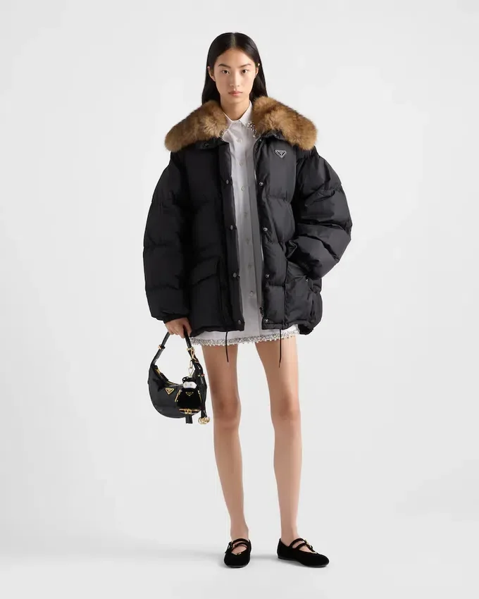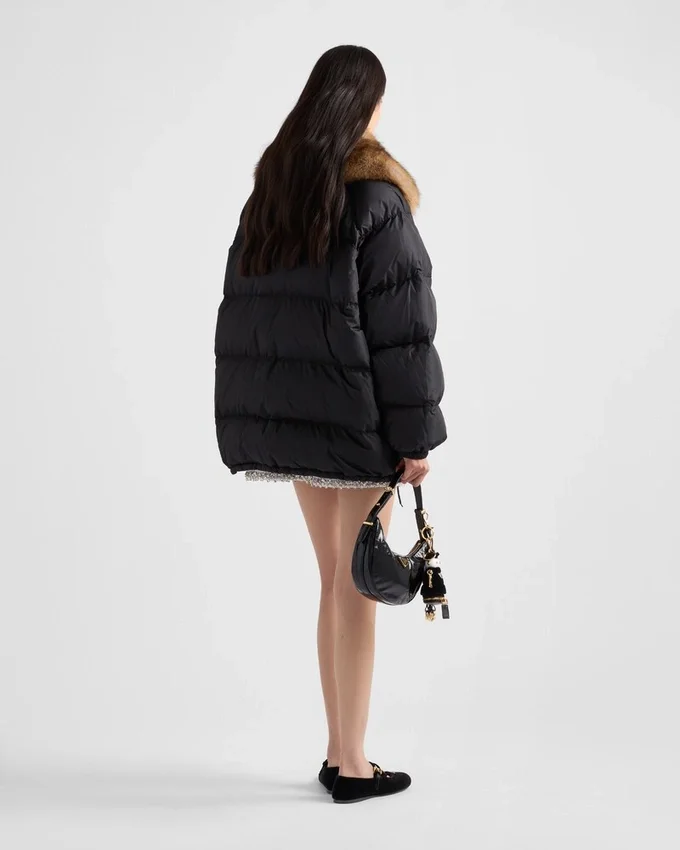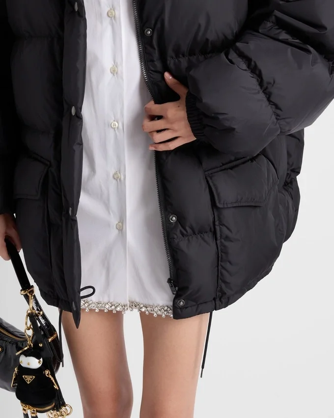 オーバーサイズのシルエットと柔らかなボリューム感が特徴の、包み込むようなダウンジャケットです。エナメル加工されたメタル製の三角ロゴが、この汎用性が高くモダンなアイテムに個性的なアクセントを加えています。製品の特徴を保ち、マイクロファイバーの抜け落ちを抑えるためのサステナブルなケアとして、頻繁な洗濯は避けていただくことをお勧めします。 ご使用後は毎回風通しの良い場所で乾かし、専門のエコドライクリーニング店にてドライクリーニングしてください。