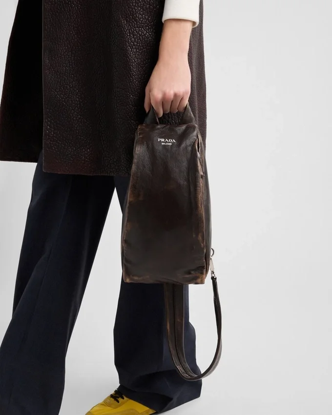 モダンなフォルムが特徴のこのバックパックは、柔らかなナッパレザーを使用し、使い込んだような風合いが、スポーティで機能的なこのアクセサリーに洗練された個性を与えています。