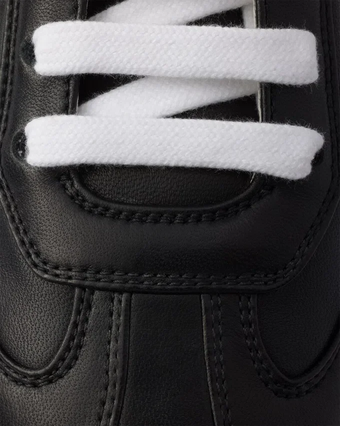 ナッパレザーを使用したこのテーパード・レースアップ・スニーカーは、クラシックなフットウェアの職人技の精巧さと、軽やかでスポーツを彷彿とさせるデザインを融合させています。