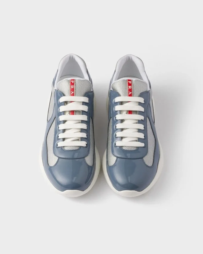 1990年代後半、America’s Cupに出場したルナ・ロッサのセーリングチームをサポートするために誕生したPrada America’s Cupは、今や時代を超えたアイコンとなっています。テクニカルファブリックのアッパーにパテントレザーを組み合わせ、ハイパフォーマンスのために設計された超軽量ラバーソールを採用し、マリンスタイルの機能性と洗練された職人技を融合させています。 流れるようなシルエットから特徴的な赤いバッジに至るまで、あらゆるディテールがパフォーマンスとスタイルの伝統を反映しています。今日、このスニーカーは海を越えて生き続けています。伝統、快適さ、洗練さを兼ね備えた、都会的なエレガンスと現代的なライフスタイルのSymboleとして。