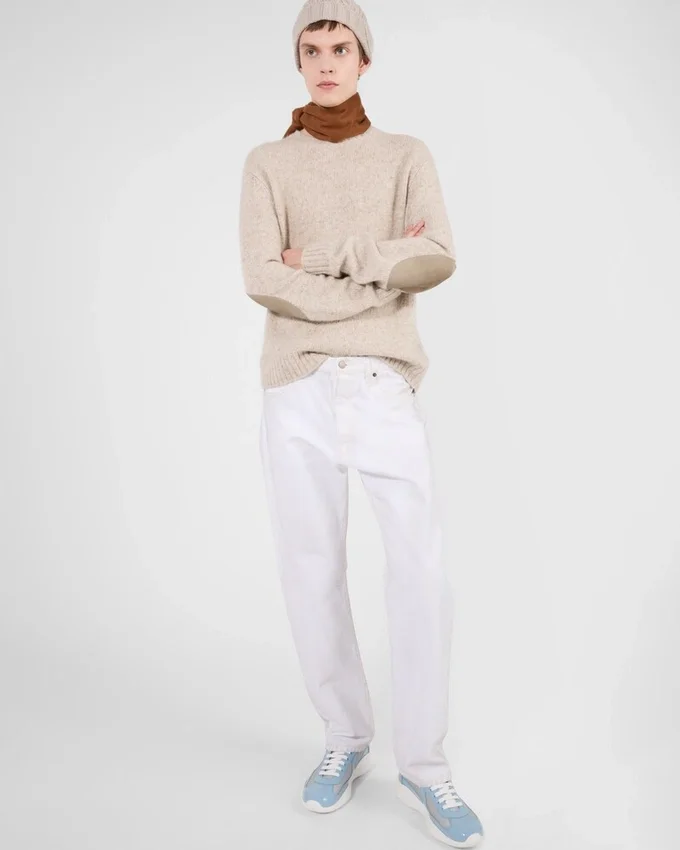 1990年代後半、America’s Cupに出場したルナ・ロッサのセーリングチームをサポートするために誕生したPrada America’s Cupは、今や時代を超えたアイコンとなっています。テクニカルファブリックのアッパーにパテントレザーを組み合わせ、ハイパフォーマンスのために設計された超軽量ラバーソールを採用し、マリンスタイルの機能性と洗練された職人技を融合させています。 流れるようなシルエットから特徴的な赤いバッジに至るまで、あらゆるディテールがパフォーマンスとスタイルの伝統を反映しています。今日、このスニーカーは海を越えて生き続けています。伝統、快適さ、洗練さを兼ね備えた、都会的なエレガンスと現代的なライフスタイルのSymboleとして。