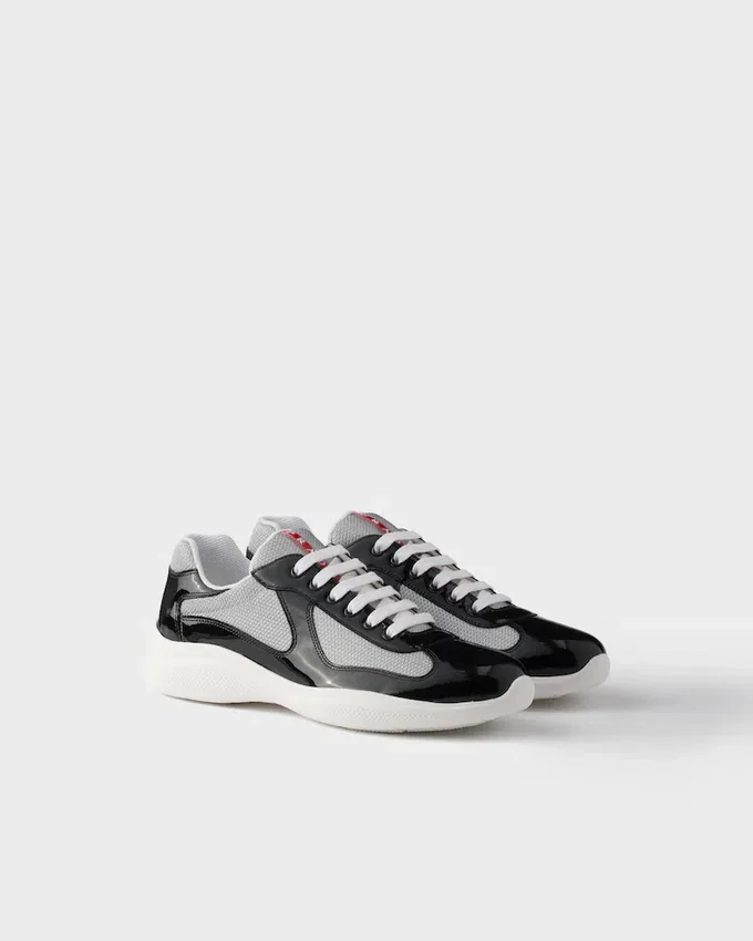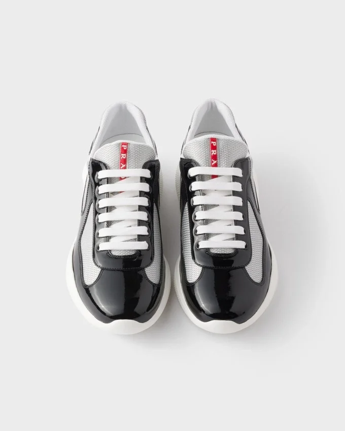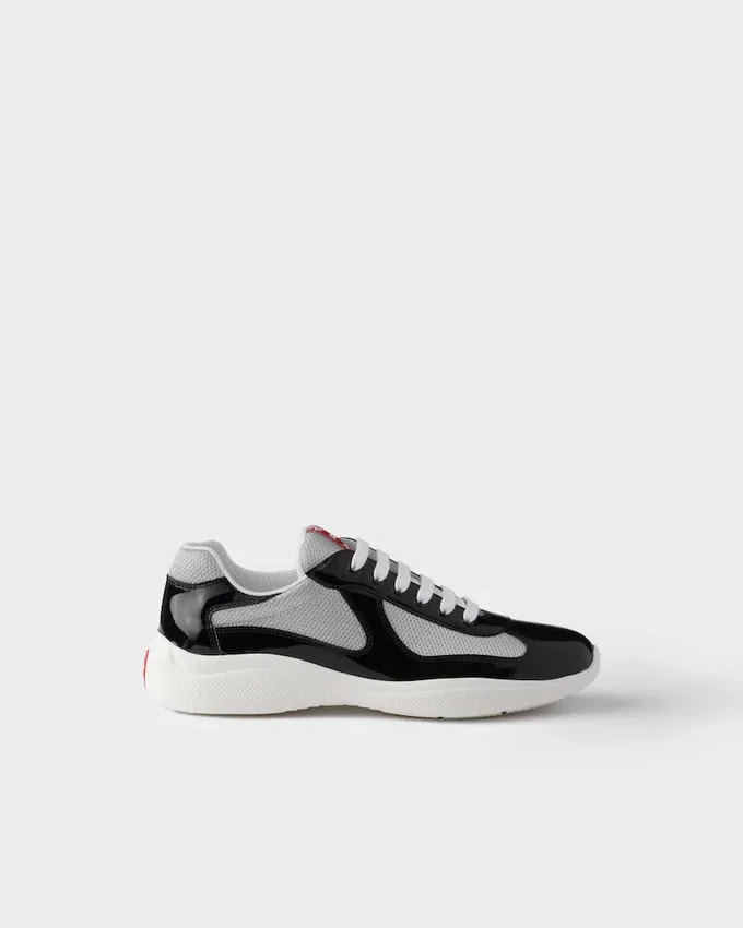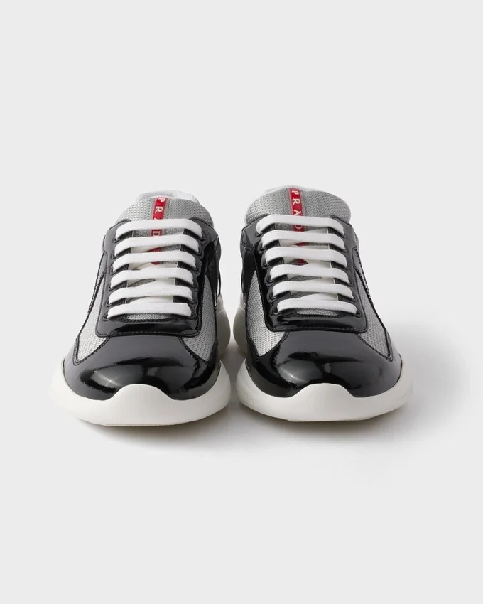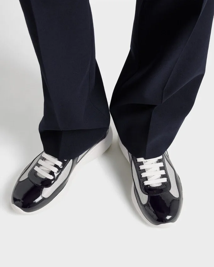 1990年代後半、America’s Cupに出場したルナ・ロッサのセーリングチームをサポートするために誕生したPrada America’s Cupは、今や時代を超えたアイコンとなっています。テクニカルファブリックのアッパーにパテントレザーを組み合わせ、ハイパフォーマンスのために設計された超軽量ラバーソールを採用し、マリンスタイルの機能性と洗練された職人技を融合させています。 流れるようなシルエットから特徴的な赤いバッジに至るまで、あらゆるディテールがパフォーマンスとスタイルの伝統を反映しています。今日、このスニーカーは海を越えて生き続けています。伝統、快適さ、洗練さを兼ね備えた、都会的なエレガンスと現代的なライフスタイルのSymboleです。