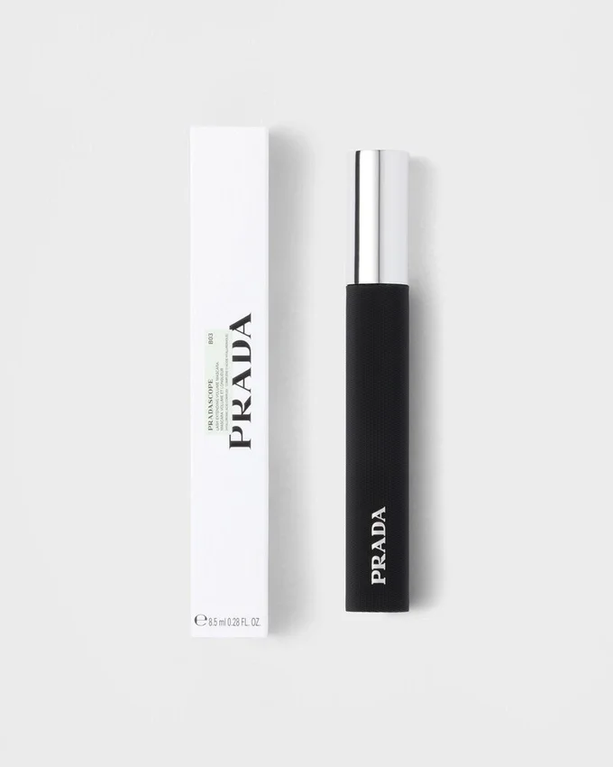 ナイロンファイバーの毛先を丹念に配置した革新的な180°リフト&グリップブラシを採用した「Pradascope」は、何度重ね塗りしても、まつ毛一本一本を根元から先端までしっかりと捉え、比類のない分離感と立体感を実現します。プラダスコープのユニークなデザインは、片面がフラットで、もう片面には精密に配置されたナイロンファイバーが備わっており、目頭から目尻まで、まつ毛をすっとキャッチしてしっかりとグリップし、すっきりとしたリフト感を実現します。 最先端の「Pradaフレキシブル・マイクロフィルム™」は、現代のマスカラ処方の限界を押し広げます。まつ毛を極薄のフィルムでコーティングし、クリーミーで高い柔軟性を保ちながら、何層にも重ね塗りを可能にします。Prada.comおよび一部の取扱店でのみ販売されています。