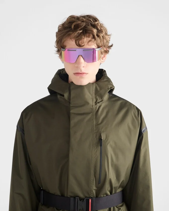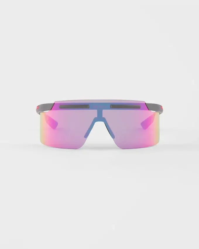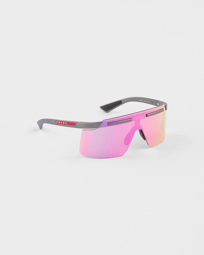 ダイナミックなラップアラウンドデザインが特徴のサングラス。革新的なリムレスレンズは極端な曲率を特徴とし、前面にレーザー刻印されたPradaロゴがアクセントとなっています。人間工学に基づいたラバー製のノーズパッドが快適なフィット感を確保します。ストレートテンプルにはプラダ リネア・ロッサのロゴがあしらわれています。