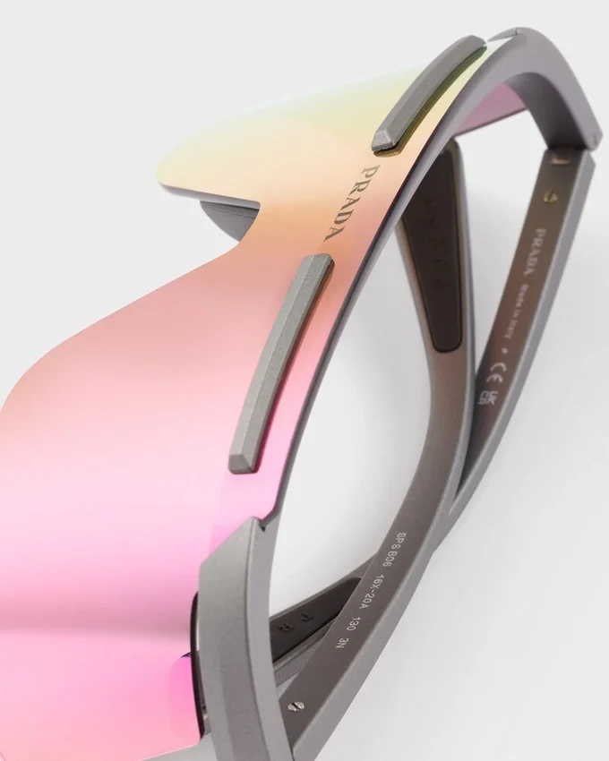 ダイナミックなラップアラウンドデザインが特徴のサングラス。革新的なリムレスレンズは極端な曲率を特徴とし、前面にレーザー彫刻されたPradaロゴがアクセントとなっています。人間工学に基づいたラバー製のノーズパッドが快適なフィット感を確保します。ストレートテンプルにはプラダ リネア・ロッサのロゴがあしらわれています。