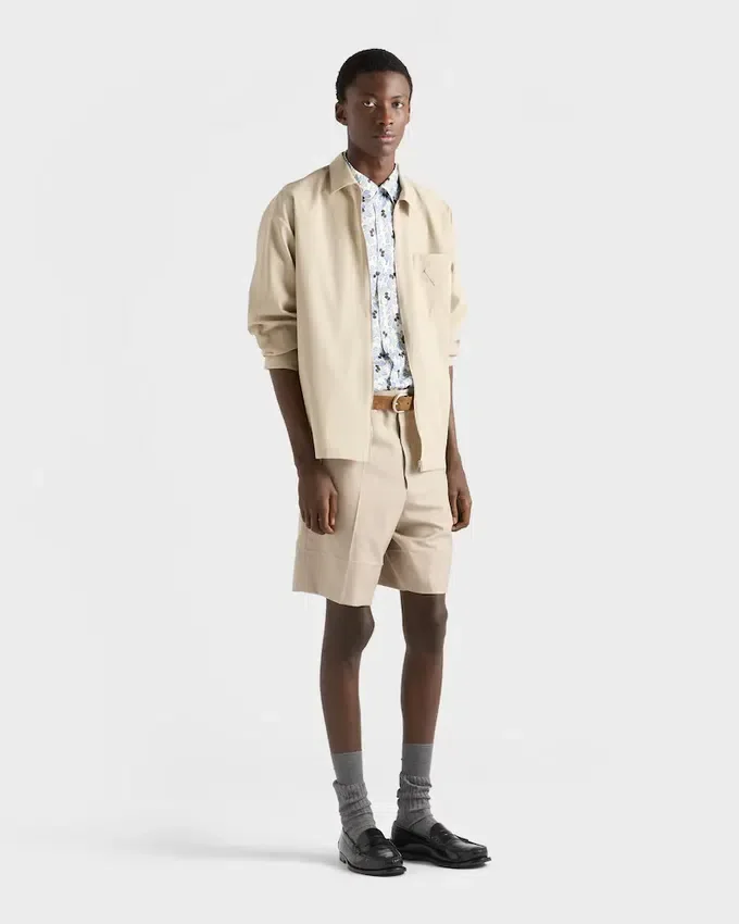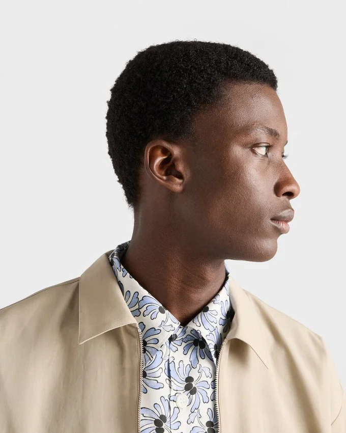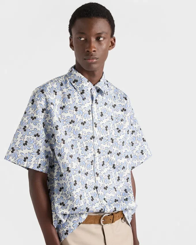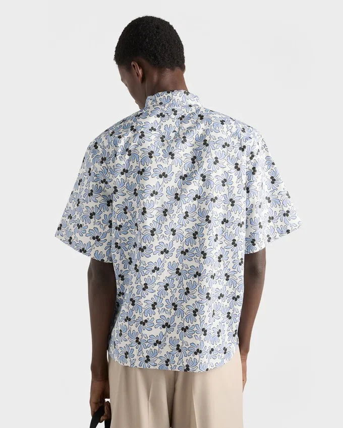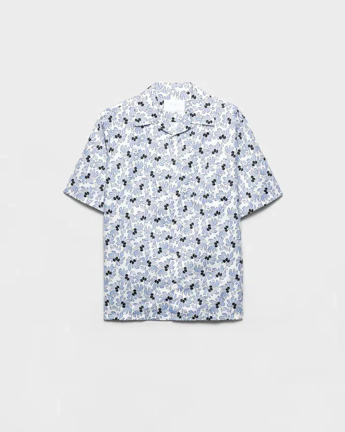 モダンなフローラルプリントが、正確なカットのこの半袖ボウリングシャツのシルエットに活気を与えています。トライアングルロゴが、このアイテムに独特なアクセントを加えています。